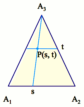 y(s, t) = (1-t)((1-s) y1 + s y2) + t y3 z(s, t) = (1-t)((1-s) z1 + s z2) + t z3 0 < s < 1, 0 < t < 1 |